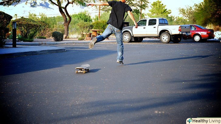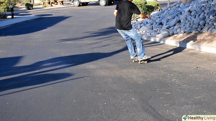 - Завжди одягайте захист, коли катаєтеся на скейтборді. Ви не будете виглядати як професіонал, він вона допоможе вам уникнути травм, коли ви будете зістрибувати з дошки.