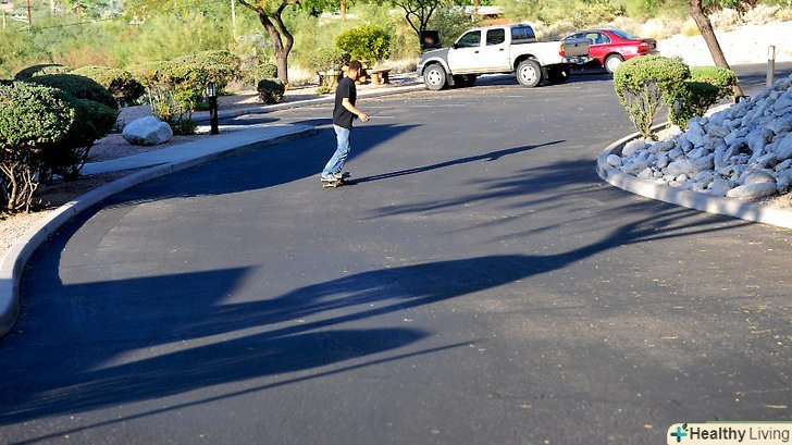 - Якщо ви тільки починає вчитися, пошукайте пологі, не надто довгі спуски. Поки ви не розвиваєте занадто велику швидкість, ви можете легко зістрибнути і встояти на ногах.