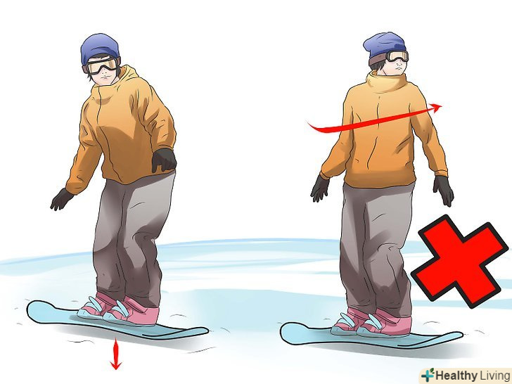 - Завжди контролюйте свою швидкість і стежте за більш повільними сноубордистами і лижниками попереду вас. Ви підвищуєте свої шанси на падіння при спробі різко об'їхати перешкоду або рухаючись на швидкості, на якій ви не можете контролюватися дошку.