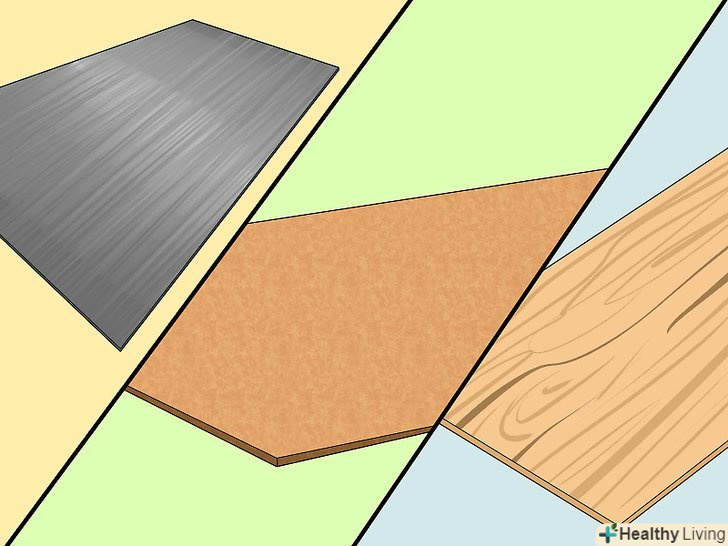 Виберіть зовнішнє покриття для ската рампи. перші два шари розумно буде зробити з фанери товщиною в 1 см, але верхній шар оптимальніше всього виготовити з мазоніта або матеріалу Skatelite, хоча кататися також можна і прямо по фанері. Виберіть таке зовнішнє покриття для ската рампи, яке буде краще задовольняти вашому бюджету і місцевому клімату. [20]- Skatelite буде найдорожчим варіантом, так як це професійний погодостійкий матеріал.