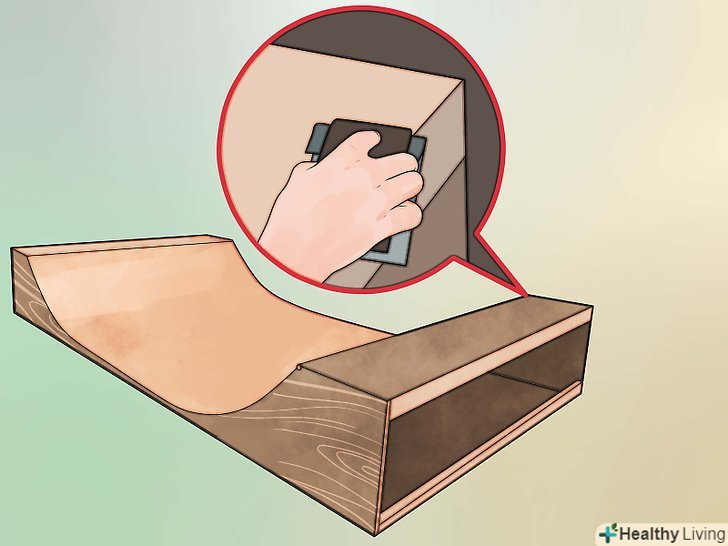 Відшліфуйте наждачним папером будь-які зазубрені краї і гострі кути. це особливо важливо зробити в тому випадку, коли рампа покрита лише фанерою. Фанера може бути різних сортів в залежності від якості. Якість фанери впливає на її довговічність. Фанера виготовляється з декількох шарів деревини і при цьому ці шари можуть бути комбінованими (з чергуванням деревини різних порід дерева). Наприклад, у фанери Твін зовнішні шари шпону зроблені з берези, а внутрішні — з хвойних дерев. [21]- Фанера першого сорту вважається найякіснішою фанерою практично без дефектів, сучків і тріщин.