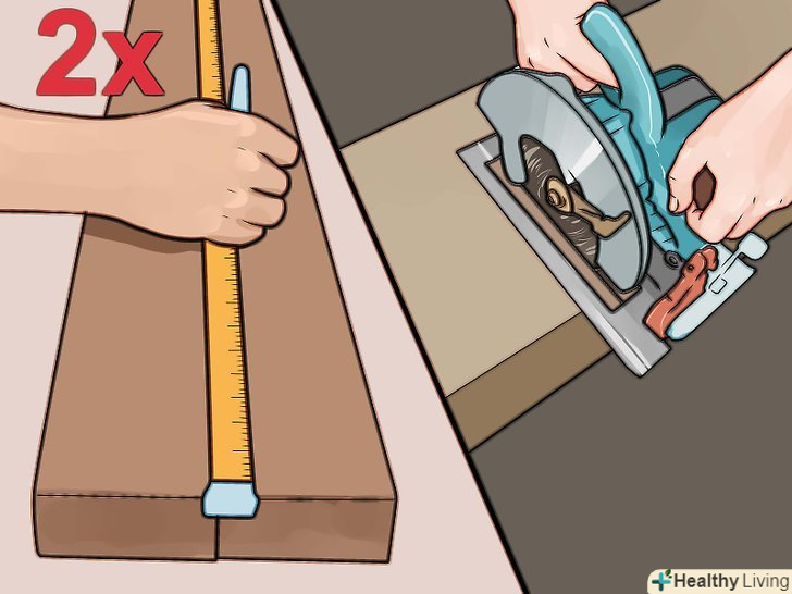 Підготуйте деревину. незважаючи на те, що деякі будівельні магазини можуть нарізати пиломатеріали за вашими розмірами (як того вимагає креслення), будьте готові до того, що вам доведеться робити це самостійно. З іншого боку, професійний розпил деревини позбавить вас від необхідності самостійної роботи з електроінструментами, тому розумно буде зважити витрати на нього з можливостями власного бюджету, щоб остаточно визначитися з вибором.- Використовуйте деревину, що пройшла обробку під тиском. Такі пиломатеріали пройшли хімічну обробку проти цвілі і тому вважаються досить вологостійкими. Зверніться до консультанта будівельного магазину, щоб він роз'яснив вам всі можливі варіанти. [6] деревина, що пройшла обробку під тиском, буває двох кольорів: зеленуватого і природного. Єдина різниця полягає в тому, яка речовина використовувалася для обробки дерева, тому просто вибирайте те, що вам більше сподобається. [7]