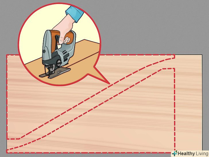 Випиляєте з фанери боковини рампи. спочатку буде необхідно випиляти дві боковини рампи з фанери. Ці зовнішні стінки рампи самі по собі будуть не дуже міцними. [12]- Якщо вам заздалегідь не розпиляли деталі в будівельному магазині, за допомогою олівця накресліть на фанері контури розпилу і випиляєте з неї дві боковини рампи.