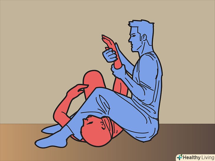 Розташуйте свої ноги так, щоб ваші коліна були зігнутими, а його рука і лікоть знаходилися між вашими ногами.