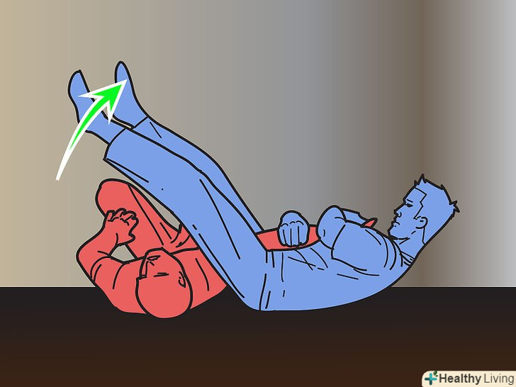 Піднімайте обидві ноги в напрямку стелі, коли тягнете за руку, щоб звести ваше та його тіло разом, тримаючи руку щіткою вгору. в результаті, ваш пах повинен знаходитися під плечем, або дуже близько до нього.