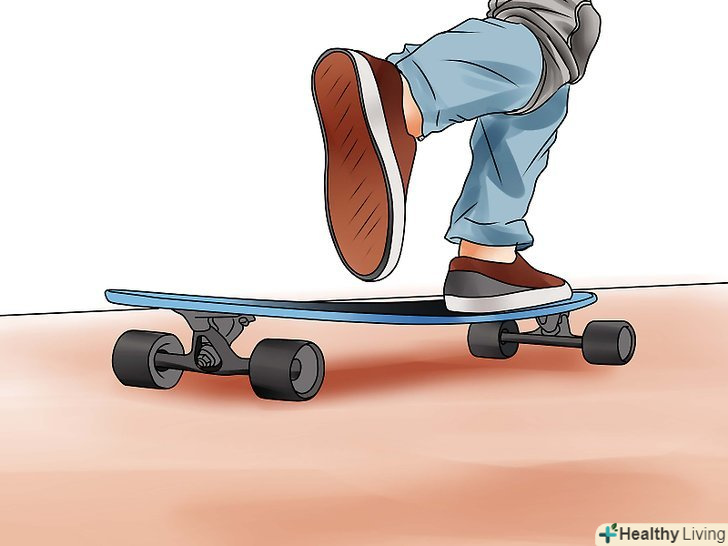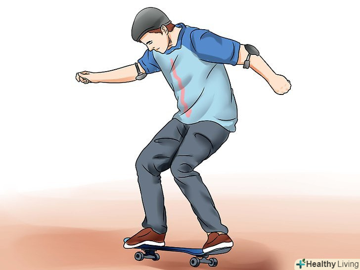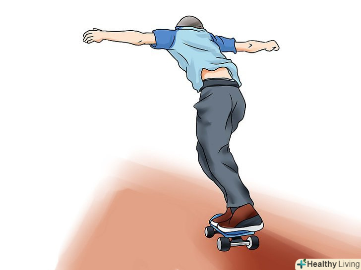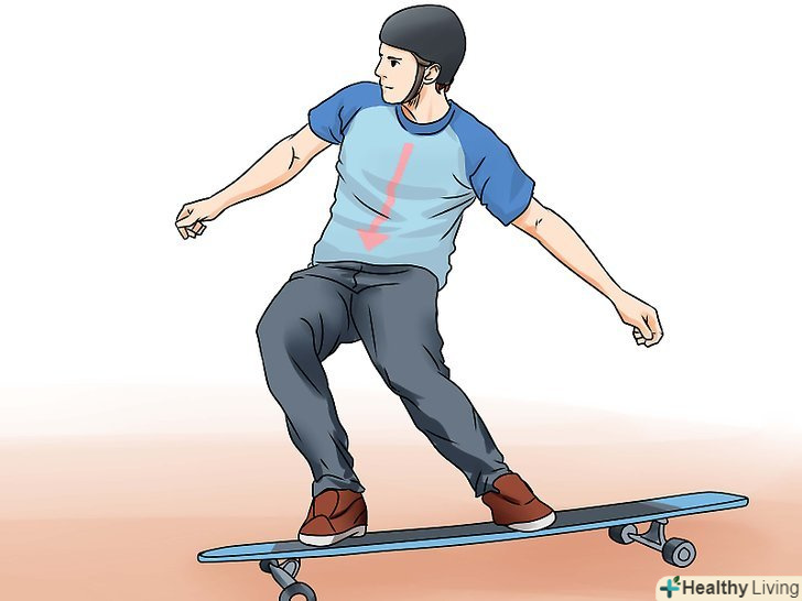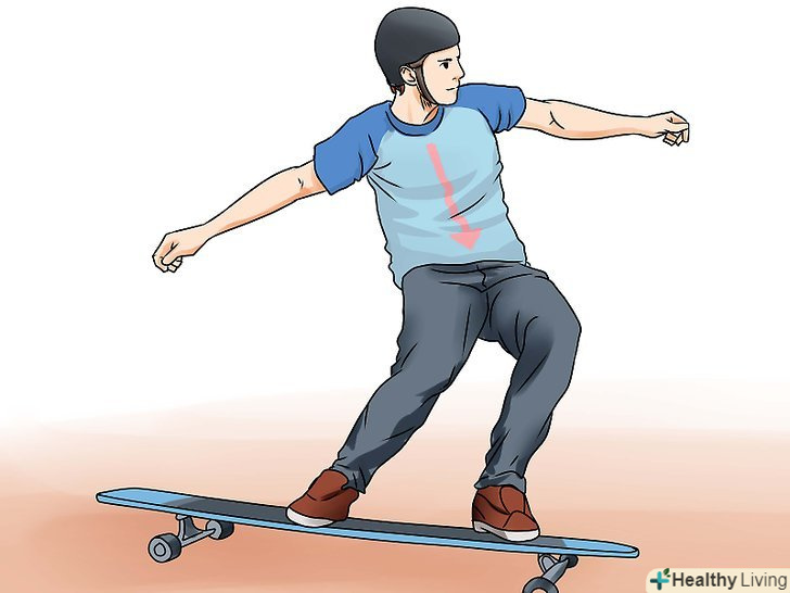 Пробуйте кататися на плоскій поверхні. Відчуйте, як дошка плавно рухається по асфальту. Чим нижче ваш центр ваги, тим впевненіше ви себе почуваєте під час їзди. Перед початком переконайтеся, що ви дотримуєтеся цього правила.