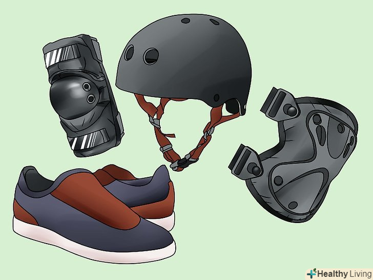 Придбайте захисну екіпіровку. Ви можете подумати, що це не найкраще рішення для лонгбордингу, але воно необхідне, особливо на початку, через можливі падінь. Якщо ж ви вибрали більш екстремальний вид лонгбордингу, то падіння неминучі.- Переконайтеся, що з екіпіровки ви маєте: