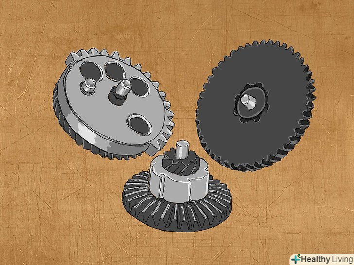 - Шестерні. шестерні є дуже важливою і дорогою частиною гвинтівки. Не спокушайтеся купувати дешеві шестерні, оскільки ви, ймовірно, в кінцевому підсумку заплатите набагато більше, щоб виправити коробку передач, якщо вони зламаються. Якщо Ви оновлюєте до пружин високої потужності або високошвидкісних / моментних електродвигунів, то вибирайте сталеві шестерні. Якщо ви хочете отримати високу швидкість стрільби, ви можете купити шестерні високої передачі швидкості від "Prometheus», «Systema»або "Guarder". "Systema», «Guarder» і "Prometheus" також роблять і високомоментні шестерні. Більшість з них мають форму спіралі, що означає, зубці розташовані під кутом. Якщо ви використовуєте такі, то вам потрібен половиннозубчатий поршень. Їх складніше правильно звести. У вас є 3 шестерні, скіс, прикріплений до ведучого колеса двигуна, шпора в середній і секторної шестерні, прикріплена до поршня.