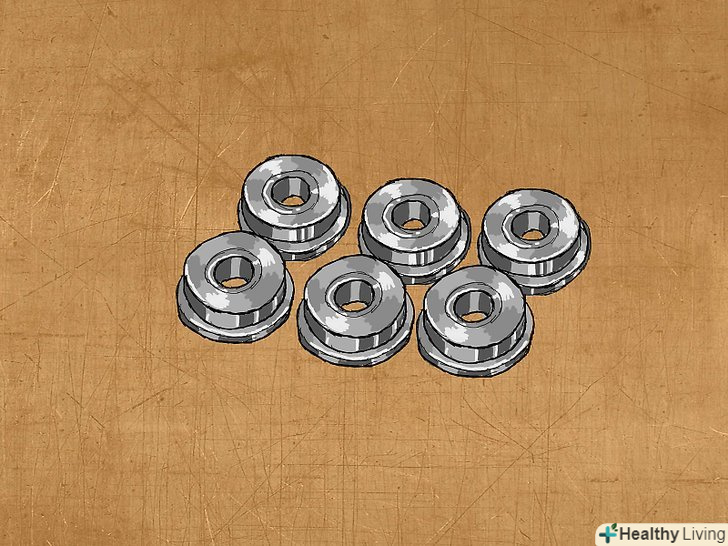- Втулки і підшипники. Втулки тримають шестерні на місці і це те, на чому обертаються шестерні. Якщо вони зламаються, шестерні, ймовірно, зірвуться. Чим більше втулка, тим краще. Більшість зброї випускаються з пластиковими 6 мм втулками. При оновленні візьміть металеві втулки, і якщо ви хочете отримати більш високий темп стрільби або крутний момент, візьміть новий корпус коробки передач, якому підійдуть втулки 7мм або 8мм діаметра. Підшипники, з іншого боку, мають невеликі металеві кульки всередині себе, що підвищує темп стрільби ще більше. 6мм і 7мм підшипники не зможуть впоратися з сильними пружинами, в той час як 8 мм і 9 мм зможуть, завдяки їх більшого розміру.