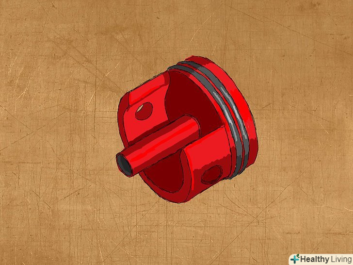 - Головка поршня. Головка поршня герметизує повітря в циліндрі. Вони можуть бути як поганими, так і хорошими. "Classic Army" і більшість подібних, як правило, мають відмінні поршневі головки. Ви також можете дістати безшумні головки, щоб заглушити гвинтівку і опорні, щоб збільшити швидкість кулі. "G amp;P», «Systema», «Guarder» і "Prometheus" виробляють якісні поршневі головки .