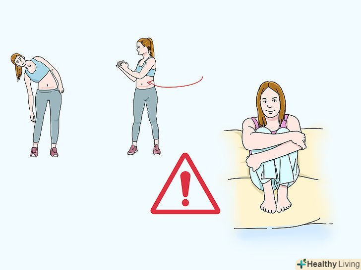 - Вправа "велосипед". Покладіть руки на потилицю і зігніть лікті. Відірвіть плечі від підлоги і підтягніть правий лікоть до лівого коліна. Потім поміняйте боку: тепер підтягніть лівий лікоть до правого коліна. Продовжуйте чергувати сторони 10-15 разів. [3]