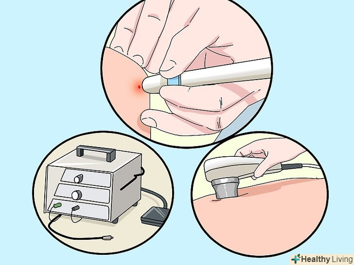 Спробуйте неінвазивні процедури. якщо думка про операцію змушує вас нервувати, то спробуйте інші процедури. У цих випадках лікар використовує лазер, радіочастотні хвилі, інфрачервоне світло або ультразвукові хвилі. Всі вони спрямовані на стимуляцію колагену або еластину шкіри, що сприяє більш пружному вигляду шкіру. [13]- Якщо ви вирішите йти цим шляхом, то зверніться до лікаря, у якого є досвід подібних процедур.