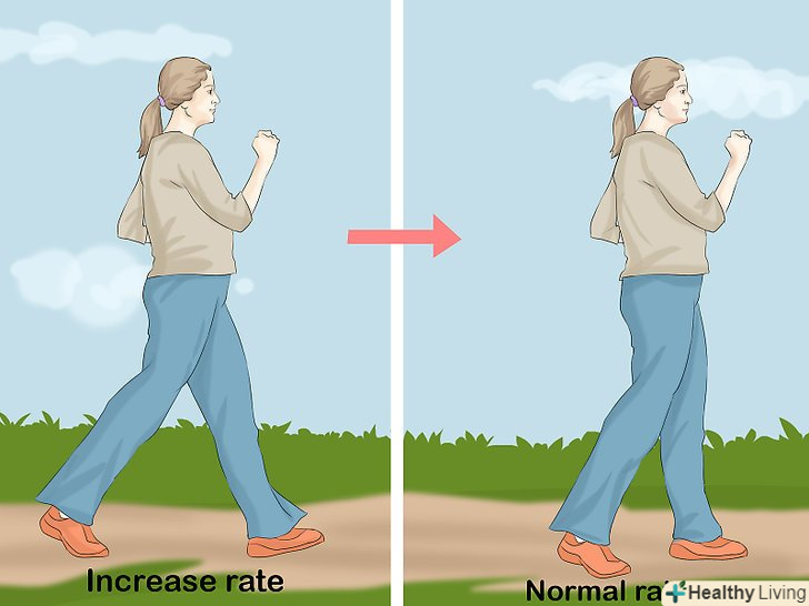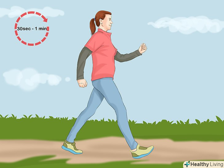 Досягнувши деяких успіхів у ходьбі, спробуйте інтервальні тренування. Ідіть швидко протягом 1-2 хвилин, а потім повертайтеся до вашої нормальної швидкості на 2 хвилини. Кожен день або раз на два дні робіть інтервальні тренування, поки не досягнете бажаних результатів. Стаючи все більш розвиненим фізично, зменшуйте час відпочинку до 1 хвилини або менше.
