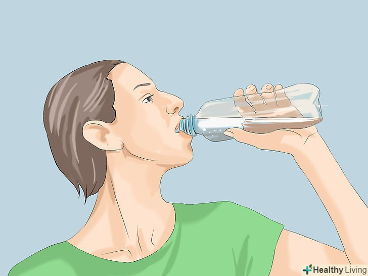 Перед початком ходьби пийте багато води. випивайте, принаймні, від 200 до 500 мілілітрів води за годину до початку ходьби. Якщо ви збираєтеся йти довго, то випийте більше. Організм не повинен зневоднюватися під час занять, особливо в жарку погоду.- Зручно під час прогулянок носити з собою пляшку з водою, щоб можна було попити в будь-який момент.