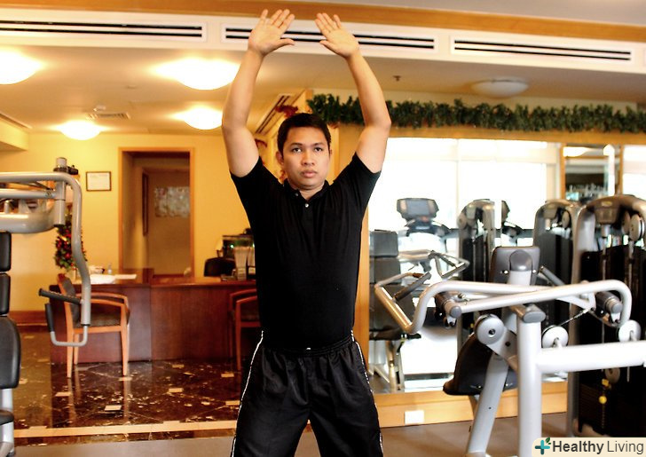- Встаньте в положення «ноги нарізно». Зігніть руки в ліктях і схрестіть їх на грудях. Стрибайте і одночасно витягайте руки над головою, а ноги розставляйте в сторони, як у вправі різножка. М'яко приземляйтеся на ноги і опускайтеся навпочіпки, торкаючись руками підлоги. Повільно поверніться у вихідне положення. Чи не перевтомлюючись, зробіть якомога більше повторень.