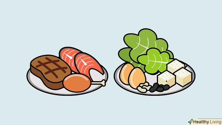 Споживайте багато протеїну. протеїни-ключ до побудови великих, здорових м'язів. Переконайтеся, що отримуєте його у вигляді яловичини, курки, риби, ягнятини і з інших джерел тваринного протеїну. Якщо ви вегетаріанець, їжте яйця, бобові, листяні овочі, тофу та інші джерела білків.