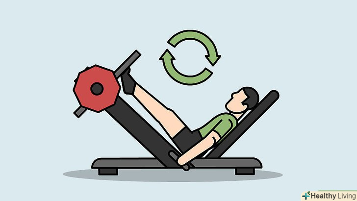 - Виконуйте підйоми на носках на тренажері для жиму ногами. ця вправа також відома як «ослячі підйоми». Сядьте за платформу для жиму ногами. Тримайте її за допомогою пальців ніг і кісточок, до яких вони кріпляться. Тисніть на платформу, піднімаючи п'яти і при цьому вдихаючи. Витягайте щиколотки максимально високо разом з витягуванням литок. Стегна і коліна повинні залишатися нерухомо весь час. Потримайте це положення, потім опустіть п'яти, згинаючи щиколотки.