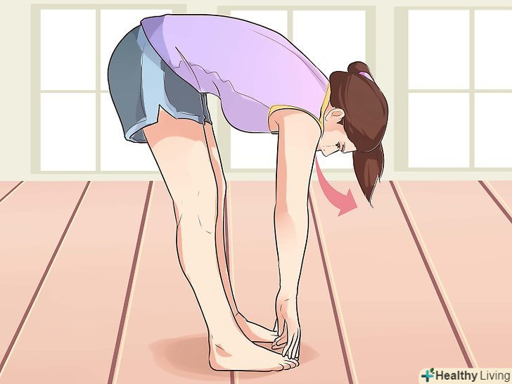 - Якщо ви ще не дістаєте долонями до підлоги, поставте їх на блоки, щоб через них тиснути руками в підлогу. [16]
