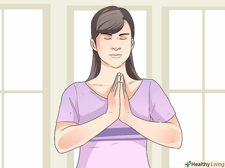 Складіть руки разом перед грудьми в вітальний жест «намасте» і направте всі свої думки на практику. Без цього не можна вважати повноцінною жодну практику йоги. Приділіть кілька секунд тому, щоб присвятити свою практику чого-небудь. Так зміцниться ваша мотивація робити комплекс вітання сонцю ще ефективніше.- Без зусиль з'єднайте підстави долонь, потім самі долоні і, нарешті, пальці, щоб скласти руки в жест намасте. Можна залишити невелику відстань між долонями, якщо ви хочете, щоб енергія вільно переміщалася в просторі.