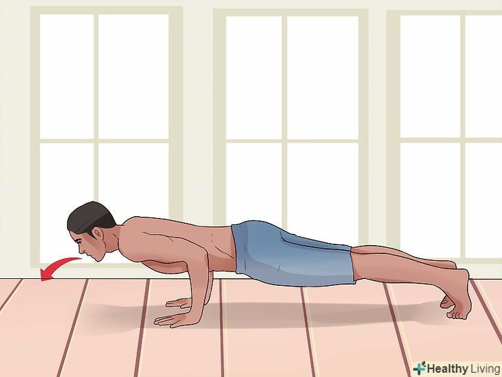 - Якщо у вас ще недостатньо сильні м'язи, щоб утримувати тіло в цій позиції, можна опустити коліна на підлогу. [60]
