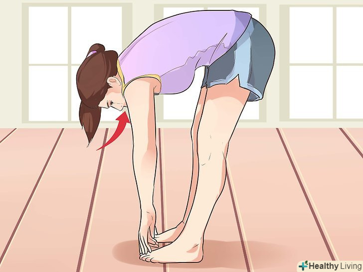 - Якщо ви ще не дістаєте долонями до підлоги, поставте їх на блоки, щоб через них тиснути руками в підлогу. [53]