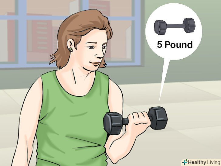 Почніть з гантель, якщо ви хочете наростити великі і масивні м'язи, або використовуйте трубчасті еспандери, щоб розвинути щільні і міцні м'язи. Якщо у вас слабка підготовка, ви можете почати з ваги від 1 до 4 кг, або ваги, який ви можете піднімати 8-12 разів по 2-3 підходи. Якщо Ви користуєтеся трубчастими еспандерами, почніть з еспандерів з легким або середнім рівнем опору.