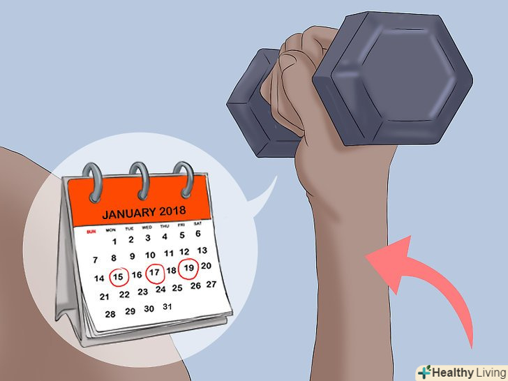 Перш ніж починати заняття, складіть графік вправ. цей графік буде дисциплінувати вас і допоможе в подальшому оцінити ваш прогрес. По можливості, зверніться за допомогою до особистого тренера в тренажерному залі, щоб він допоміг вам скласти безпечний і ефективний план. Якщо ви не можете ходити в тренажерний зал, знайдіть в Інтернеті фітнес-тести, які визначають ваш поточний рівень і допомагають скласти план тренувань. Ви можете займатися і в залі, і вдома; пам'ятайте, що перебуваючи вдома, ви можете видозмінювати вправи, для виконання яких потрібне спеціальне обладнання.