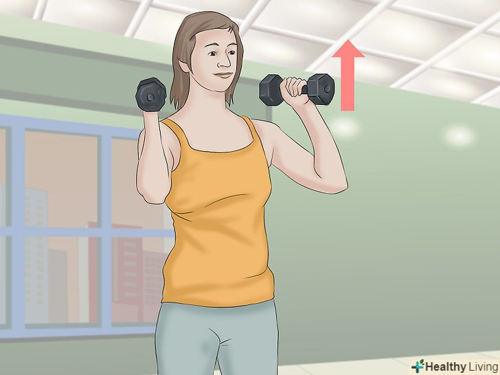 В залежності від ваших цілей, ви можете виконувати різні вправи з гантелями — для розвитку Преса, плечей, а також з гантелями присідання і випади. ви можете виконувати ці вправи з гантелями або трубчастими еспандерами. Прагніть повторювати вправу 8-12 разів по 2-3 підходи.- Ви повинні знати правильне положення тіла для кожної вправи, яку виконуєте. Це не тільки забезпечить безпеку виконання, але також максимально раціонально і ефективно задіє ваші м'язи. В якості керівництва, подивіться відповідні відео в Інтернеті.