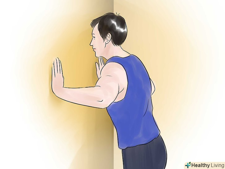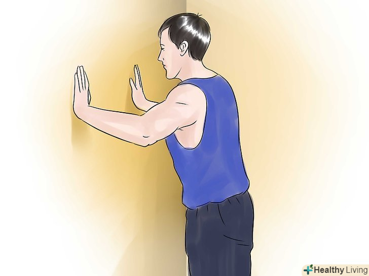 Упираючись руками в стіну, нахиліть корпус вперед.