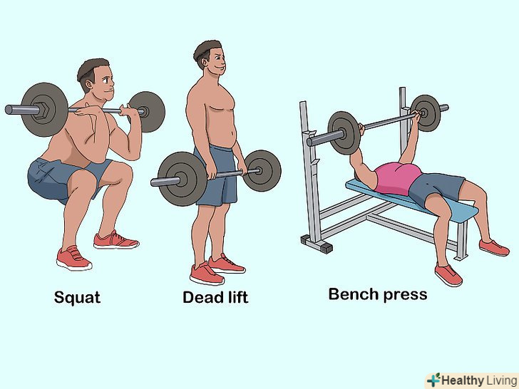 Робіть також присідання з додатковою вагою в руках, станову тягу і жим лежачи. ці три вправи є найбільш ефективними в бодібілдингу.