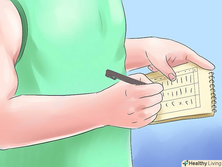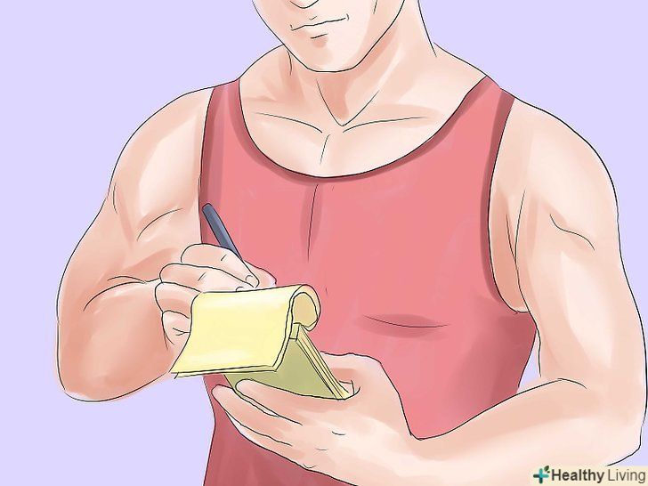 Записуйте ваш прогрес. ведіть щоденник тренувань, щоб визначити спортивні звички або досягнення.- Відстежуйте, чи завершуєте ви всі заплановані вправи або тільки частину їх, і вивчіть, як ваша витривалість і можливість ефективно виконувати всі вправи поліпшуються з часом.