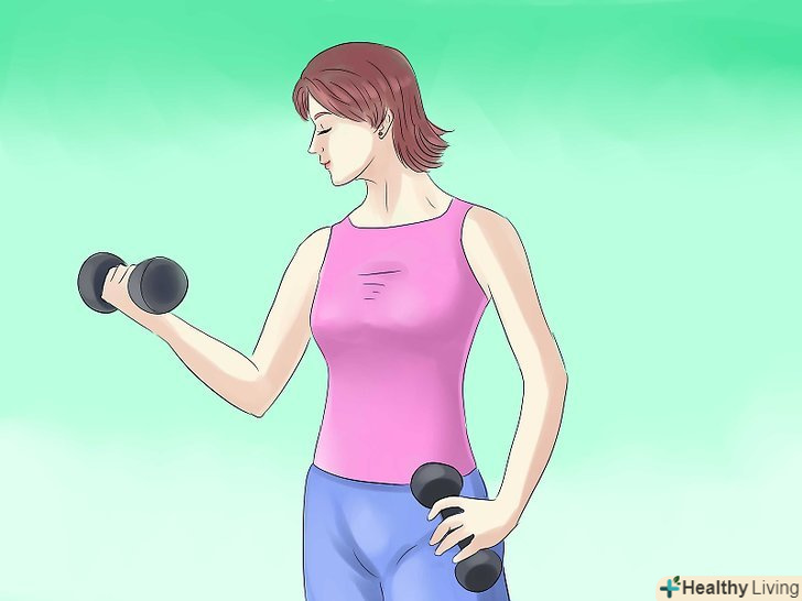 Розробіть репертуар силових вправ. силові тренування обов'язково повинні бути включені в будь-який фітнес-план. Складіть список вправ для розвитку і підняття тонусу м'язів, які ви можете чергувати кожен раз, щоб додати різноманітності в ваш фітнес-план і працювати щотижня над новою групою м'язів.- Подумайте про те, щоб використовувати тренажери та інше спорядження для силових навантажень. Вагові машини, гантелі і м'ячі для вправ - ось тільки кілька корисних інструментів для найрізноманітніших силових вправ.