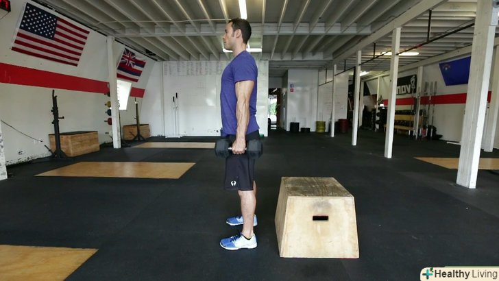 Не одягайте важкоатлетичний пояс. важкоатлетичний пояс підтримує спину і її положення в межах лінії решти тіла, а Вашому тілу необхідно навчитися робити це самому.- Розминайтеся. як і при будь-якій фізичній активності, необхідно розминатися і розтягуватися для запобігання розтягувань і більш серйозних травм. Для початку необхідно розігрітися, працюючи з дуже маленькими вагами (активувати серцеву діяльність, почастішавши серцебиття), слідуючи наступним вказівкам.