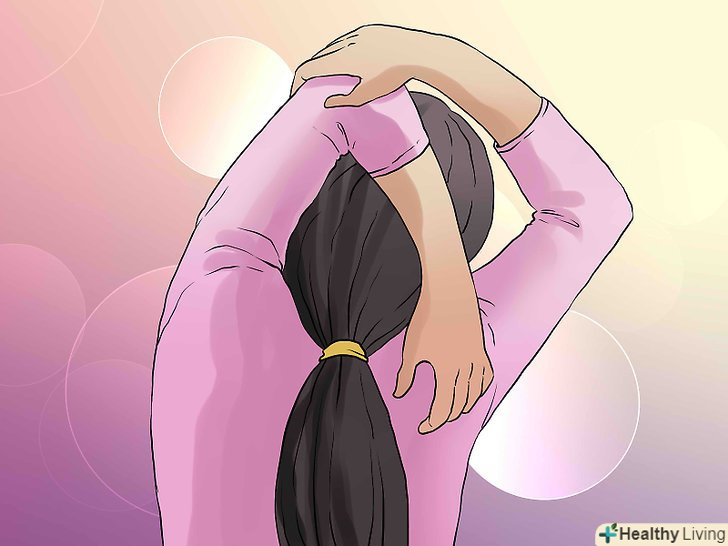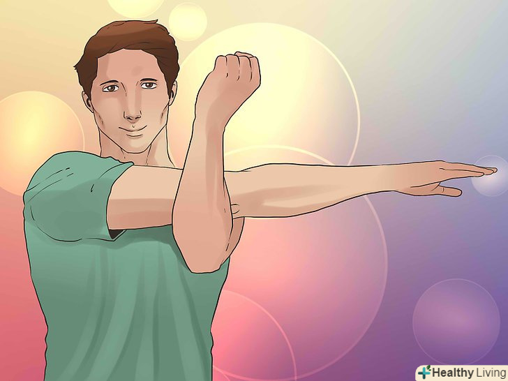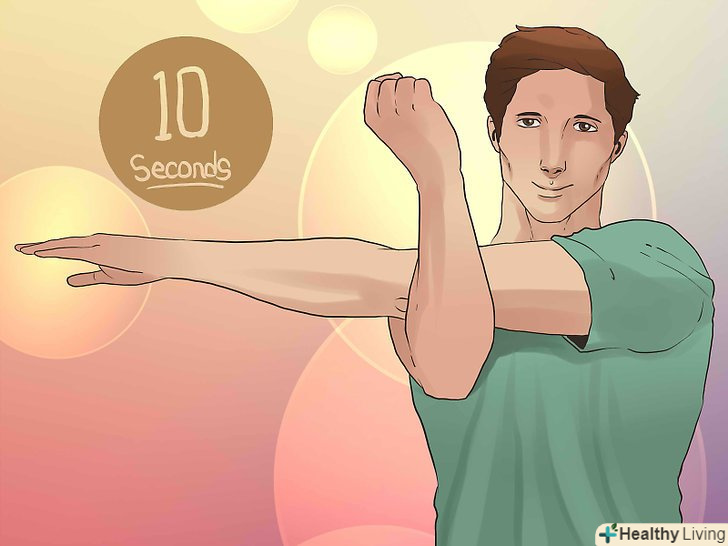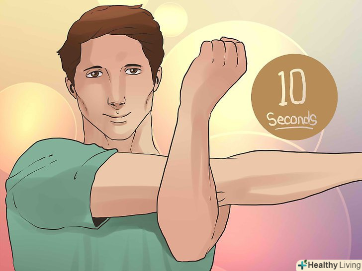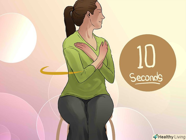 Повторіть цю вправу з іншого боку. ліву руку поставте так, щоб вона вказувала вправо, а праве передпліччя повинно, як гаком, охоплювати її і тиснути, щоб розтягнути м'язи верхньої частини спини. Протримаєтеся так 10 секунд. [3]