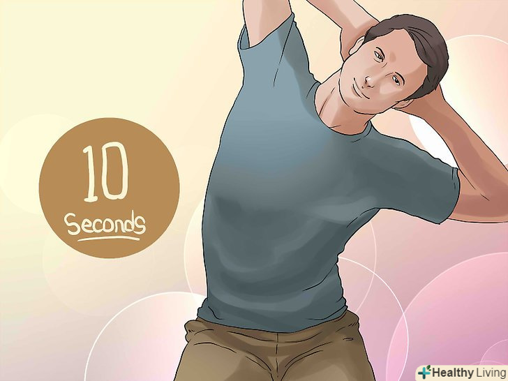 Зробіть нахил в сторону. Руки заведіть за голову. Утримуючи ноги на землі, нахиліться вліво так, щоб ваш лівий лікоть дивився в підлогу. Протримаєтеся так 10 секунд, потім нахиліться вправо, щоб тепер в підлогу дивився ваш правий лікоть. Завмріть в цьому положенні на 10 секунд. Повторіть по п'ять разів для кожної сторони.