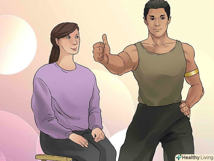 Сядьте або встаньте з випрямленою спиною. цю вправу можна робити, сидячи на стільці або стоячи, так що робіть, як вам буде зручніше. Тримайте спину і голову прямо.