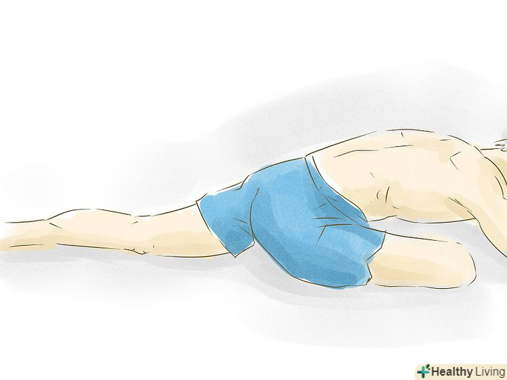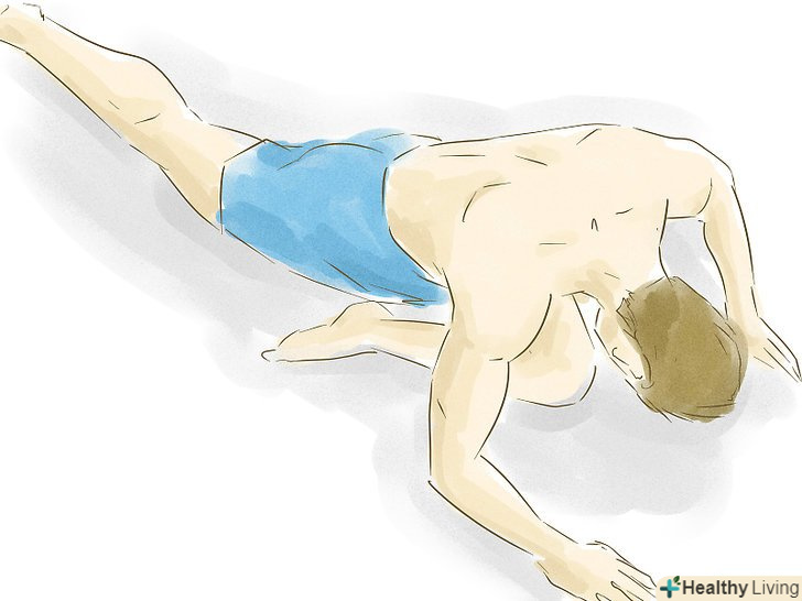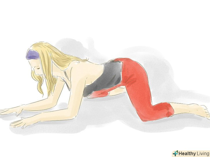 Виконайте розтяжку "жаба". Станьте на коліна, розташуйте лікті на підлозі і постарайтеся розсунути коліна нарізно якнайдалі. Не доводьте вправу до болю-м'яз потрібно розтягувати, а не рвати.