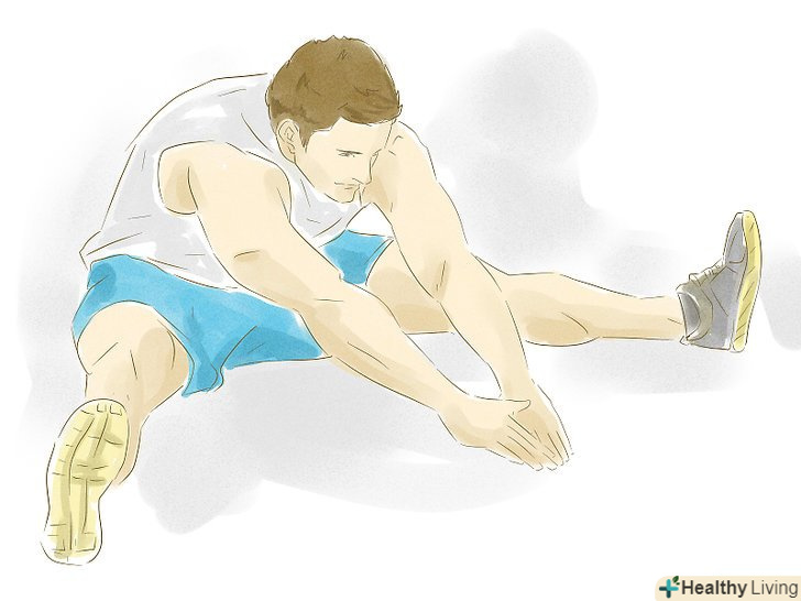 Сядьте і дотягніться руками до пальців ніг, що розтягне м'язи спини і стегон. не забувайте випрямляти шкарпетки вперед або ж направляти їх до себе, розтягуючи таким чином ікри ніг.
