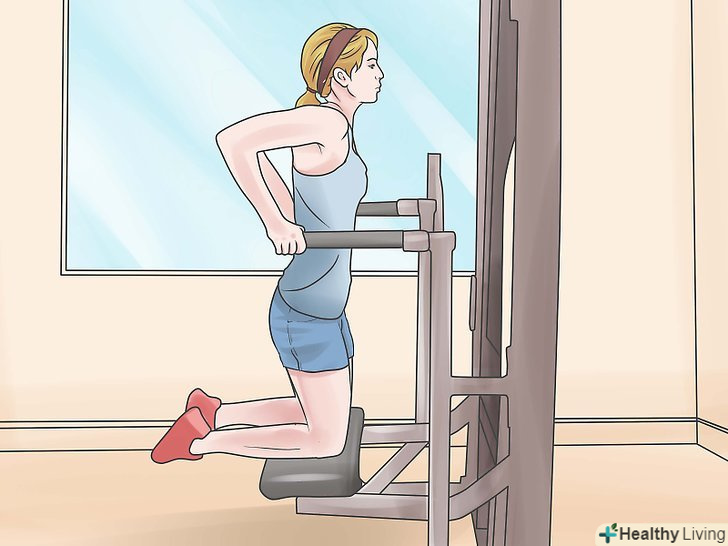 Почніть з силових тренажерів. якщо ви раніше ніколи не займалися важкою атлетикою, спочатку дізнайтеся, як правильно робити вправи.- Виберіть вагу, з яким ви зможете зробити як мінімум 2 підходи по 10 повторень. Ті, кому потрібно висушити м'язи, можуть робити вагу менше, 3 підходи по 15 повторень.