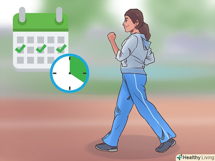 Виберіть дні і час для тренувань. це дозволить вам зробити спорт звичкою. Щоб завжди встигати на тренування, потрібно зробити їх своїм пріоритетом. [11] виділяйте час для спорту кілька разів на тиждень. Наприклад, бігайте по годині кожен день о сьомій ранку або ходите в тренажерний зал по понеділках з 6 до 8.- Спочатку буде складно привчити себе до режиму. Але якщо займатися безсистемно, спорт не увійде у вас в звичку.