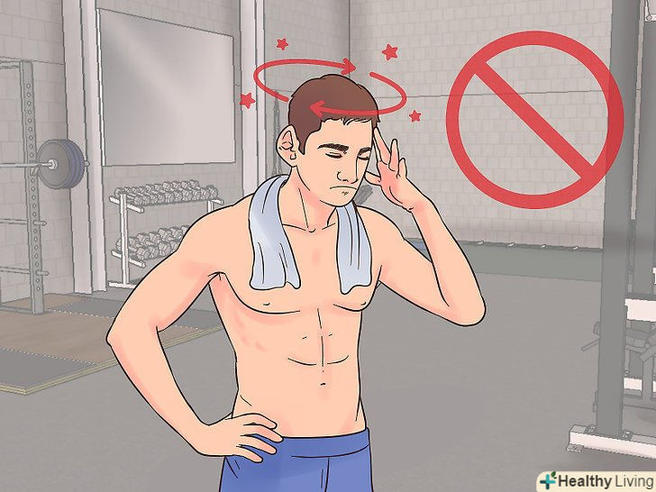 Не дозволяйте собі сильно втомлюватися на самому початку тренувань. якщо ви тільки починаєте займатися спортом, вам вкрай важливо вміти прислухатися до себе. Якщо відчуєте, що вам складно дихати або ваші ноги слабшають і трясуться, перестаньте бігти. Якщо руки тремтять і ви боїтеся впустити на себе гантелі, зупиніть тренування.- Якщо ви відчуваєте біль, брак повітря, запаморочення або нудоту, зробіть перерву. Можливо, ви піддаєте себе надмірному навантаженню.