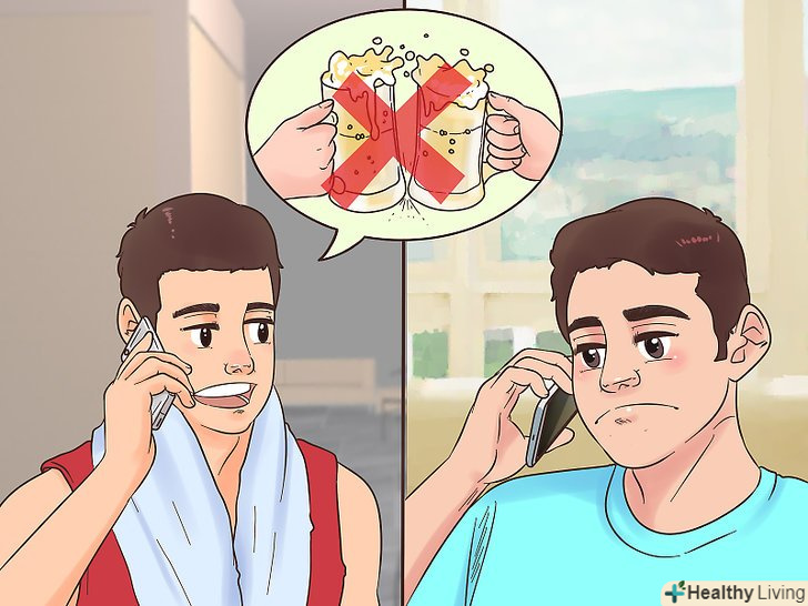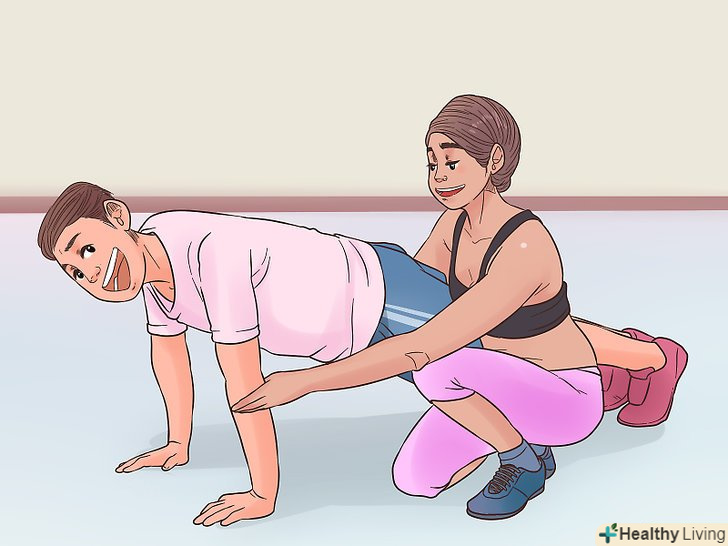 Займайтеся спортом разом з другом. якщо займатися на самоті, можна дуже швидко втомитися від тренувань. Щоб цього не сталося, знайдіть друга, який теж хоче почати займатися спортом. Запропонуйте разом ходити на тренування або бігати вранці. Якщо займатися спортом з кимось, вам буде простіше мотивувати себе і дотримуватися режиму тренувань. [10]- Якщо ваш друг вже займається спортом, запитайте, чи можна вам приєднатися до нього.