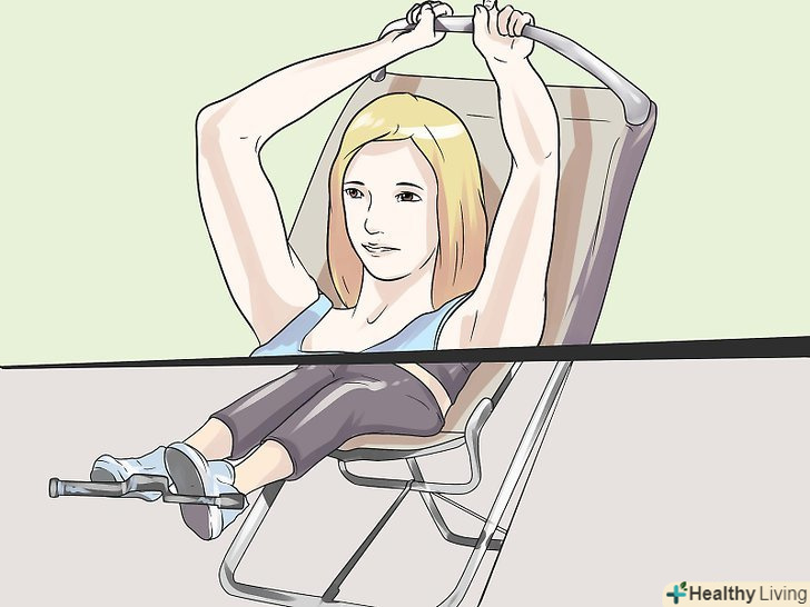Виведіть підставку для ніг на Ab Lounge 2 вперед. помістіть обидві руки на нерухомі бічні рукояті за собою і сядьте, як якщо б ви сідали на диван.- Сидіть прямо, або злегка прикладіться до спинки, але не відкидайтеся назад з силою, поки не будете готові почати тренуватися.