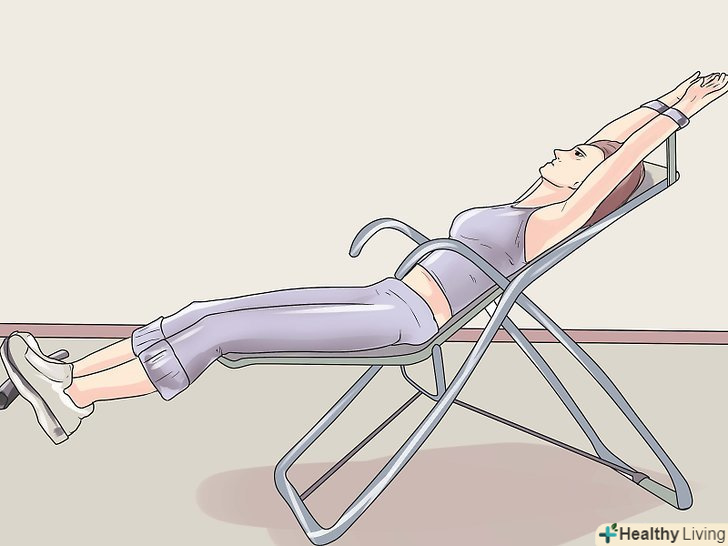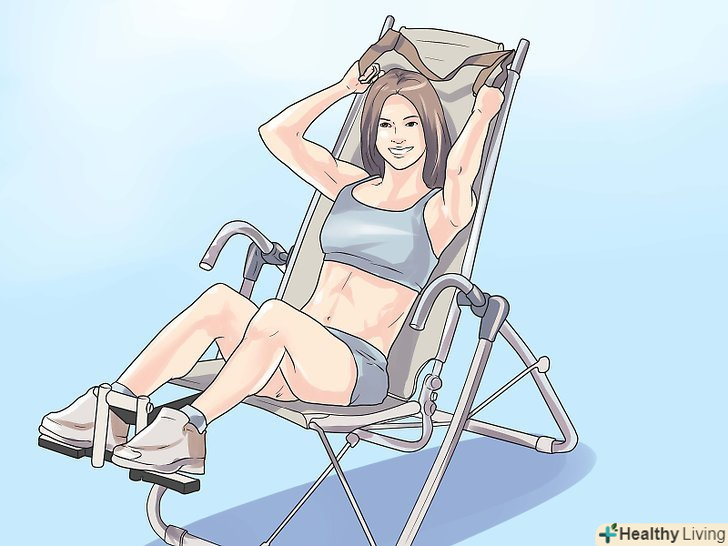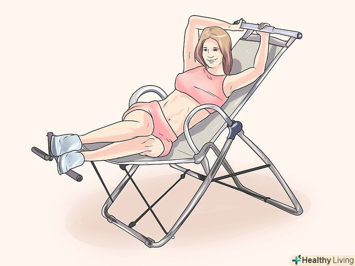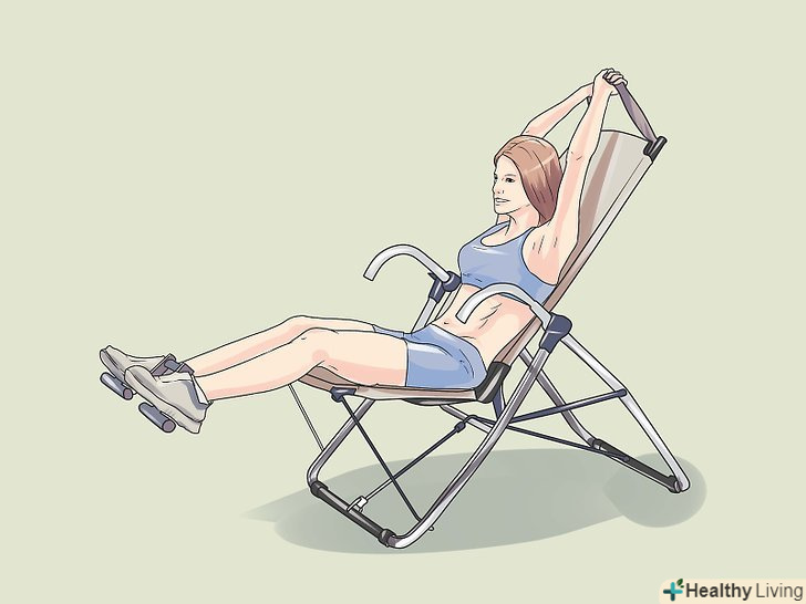 Напружте пряму м'яз живота, яка йде спереду від ребер до тазу. виконайте складний рух, підтягуючи ребра до стегон.- Зауважте, незважаючи на те, що в інструкції до тренажера йдеться про згин в попереку, в результаті складається руху з опусканням стегон і підняттям ніг і торсу згин відбудеться в стегнових суглобах, а не в поперековому відділі хребта. Пряма м'яз живота не відповідає за згинання стегнових суглобів, це роблять згинальні м'язи стегон.