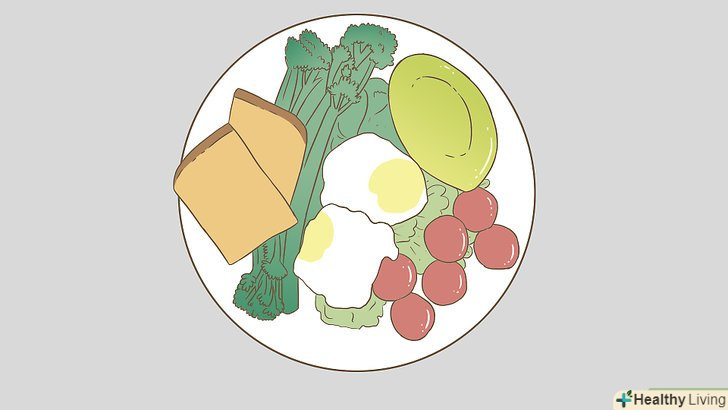 Їжте більше здорової їжі. якщо кількість споживаних калорій буде занадто низьким для вашого рівня навантаження, організм буде заповнювати їх нестачу за рахунок м'язової маси. Щоб м'язова маса збільшувалася, ви повинні споживати більше калорій, ніж витрачаєте, причому в основному отримувати їх зі складних вуглеводів і білків. Чи не налягайте на прості вуглеводи і жири — енергії від них вистачає ненадовго, і ви можете наростити жирову масу замість м'язової.- Дотримуйтеся збалансованої дієти: цільні злаки, білок (м'ясо, риба, яйця, тофу і так далі), фрукти, овочі і продукти, багаті клітковиною.