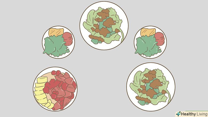 Їжте більше трьох разів на день. якщо ви маєте намір збільшити м'язову масу, вашому організму потрібно багато «палива". Трьох звичайних прийомів їжі вам не вистачить. Додайте ще два прийоми, і в кожен з них вживайте порцію білкової їжі розміром приблизно з долоню. Можливо, вам доведеться їсти більше, ніж хочеться, але ви будете задоволені результатом, коли побачите, як Ваші груди знаходить бажаний рельєф. [6]- Якщо ви Худорляві і хочете наростити м'язову масу, збільште розмір порцій. Якщо у вас є зайвий жир, який ви хочете скинути, тримайте розмір порцій під контролем.