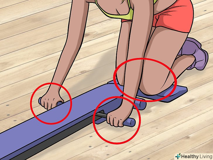 Коліна будуть спочивати на спеціальній подушечці. Схопіться за ручки обома руками.