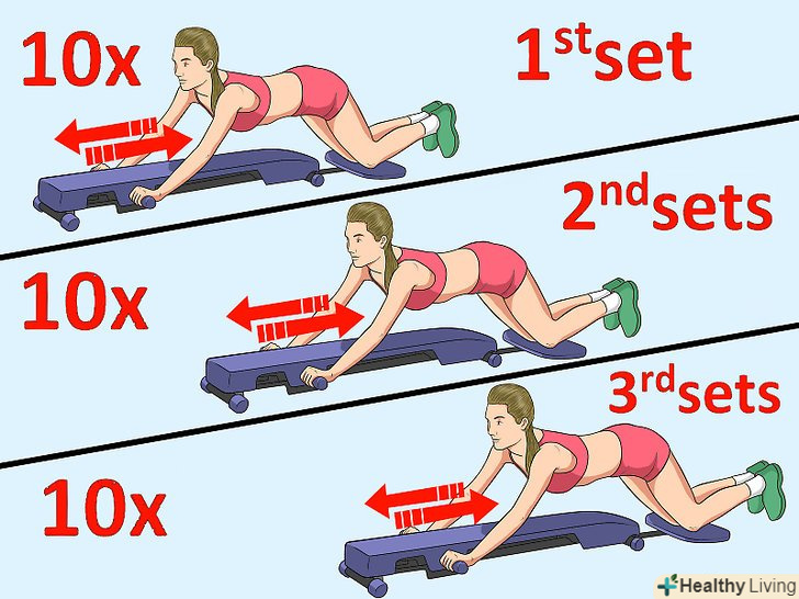 Повторіть 10 разів. Пам'ятайте, що ваш тулуб повинен бути завжди паралельно підлозі.