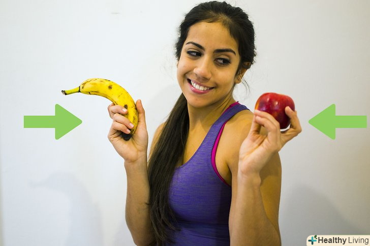 Почніть їсти інші продукти. коли мова заходить про дієту, то також важливо і те, що ви їсте. Спробуйте їсти якомога менше напівфабрикатів. Крім того, уникайте продуктів з високим вмістом жиру і цукру. Замість цього, їжте більше овочів, особливо капусту і шпинат, продукти з цільного зерна, йогурти, курячі грудки, яєчні білки, деяку рибу, а також продукти з корисними жирами, такі як оливкова олія, авокадо і горіхи.- Пийте стільки води, скільки можете випити! Вона освіжає, не містить калорій і, як було встановлено, сприяє втраті ваги. [5]