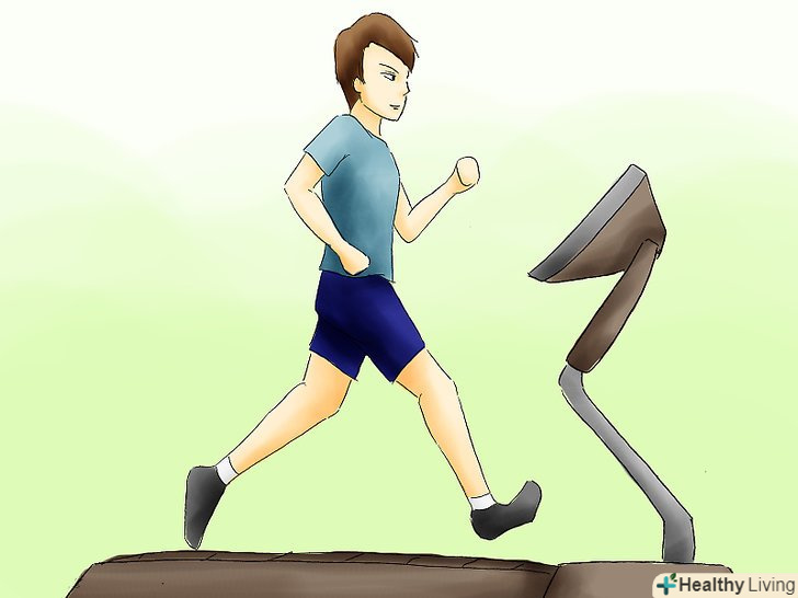 На першому тренуванні 5 хвилин пройдіться, і 1 хвилину пробіжите. наступного разу 10 хвилин пройдіть і 2 пробіжіть. Поступово збільшуйте навантаження за тим же принципом.- Спробуйте спочатку пройти 100 метрів, а потім 100 метрів пробігти. Збільшуйте пробіжку на 50 метрів, а дистанцію, яку потрібно пройти, зменшуйте на ту ж відстань.